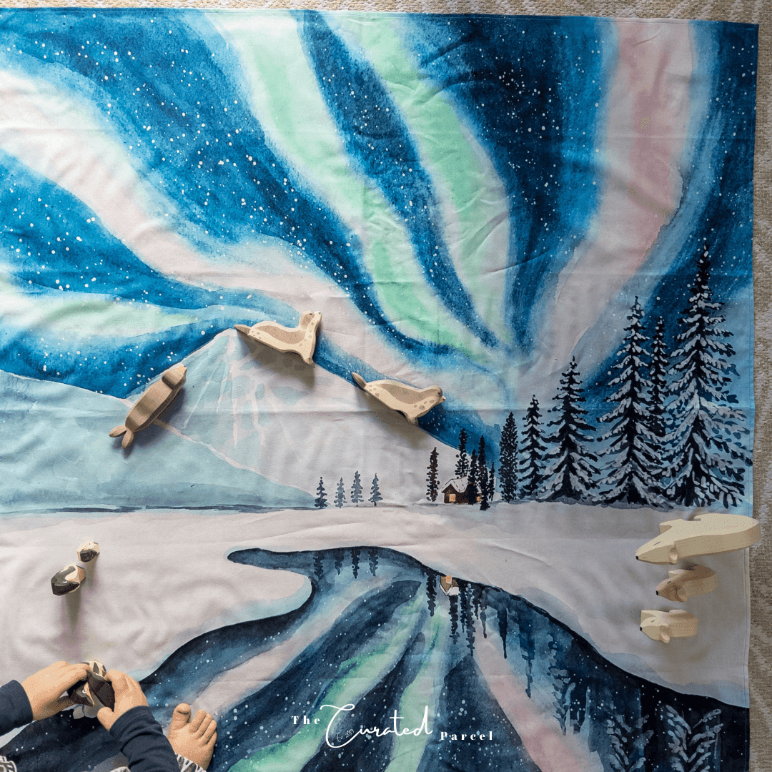 Where the night sky is painted in hues of green and blue, the Northern lights dance and weave, telling a story of wonder and magic. This cloth truly captures the essence of this enchanting phenomen and takes children on a journey to uncover the mysteries of the Aurora Borealis.