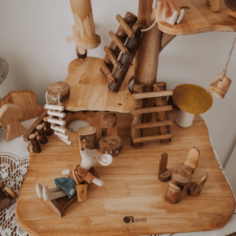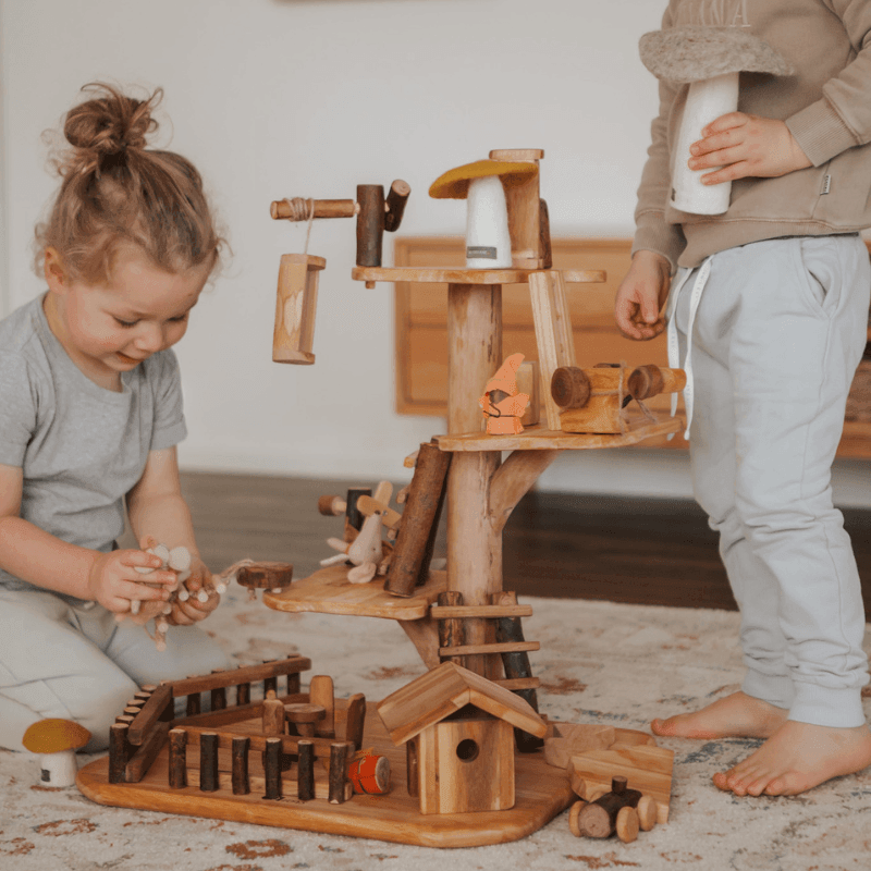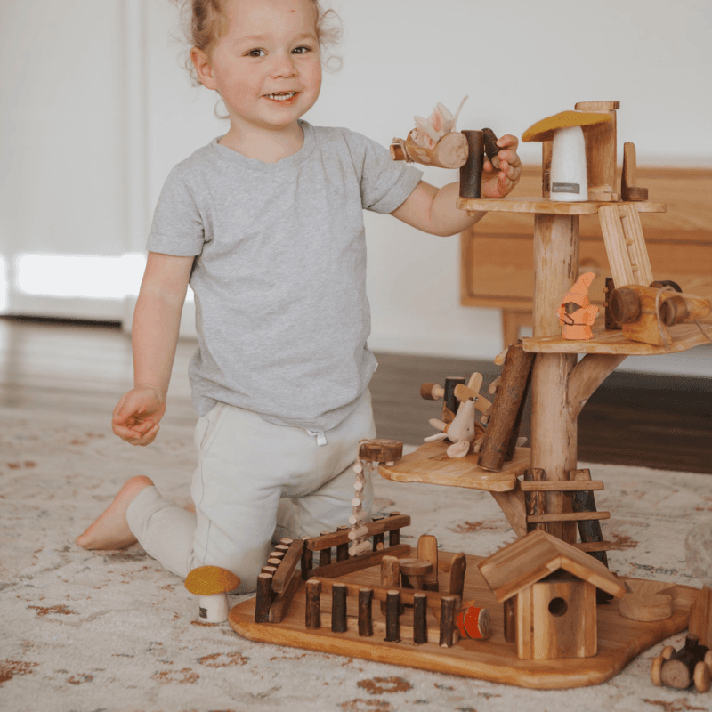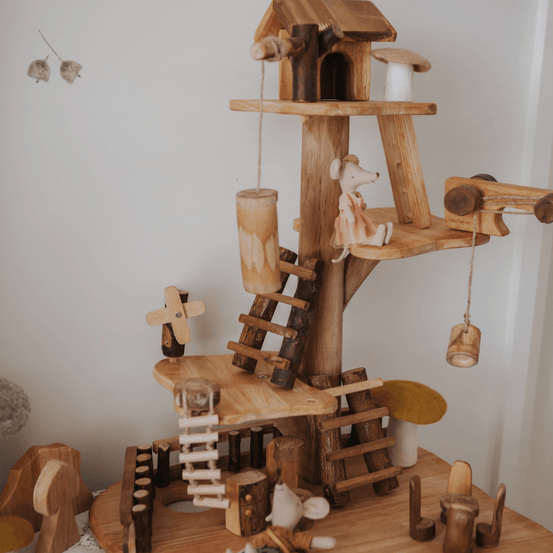 The Big Adventure Treehouse measures 58cm tall x 46cm wide. With multiple leavers, stairs and accessories this is the perfect treehouse to let your imagination go wild. Includes Treehouse, Car, Furniture, fences, stairs, leavers, little house and a wooden car.