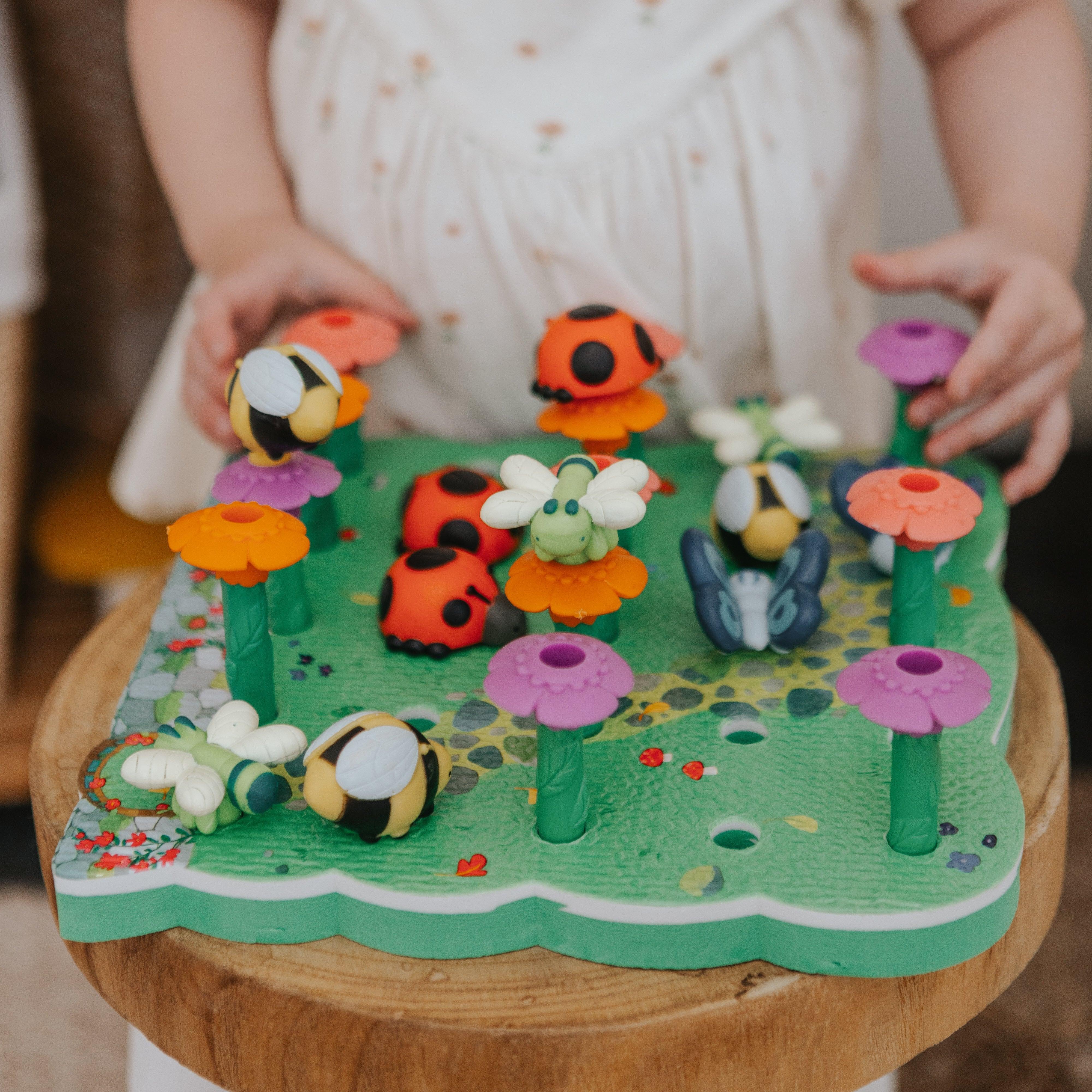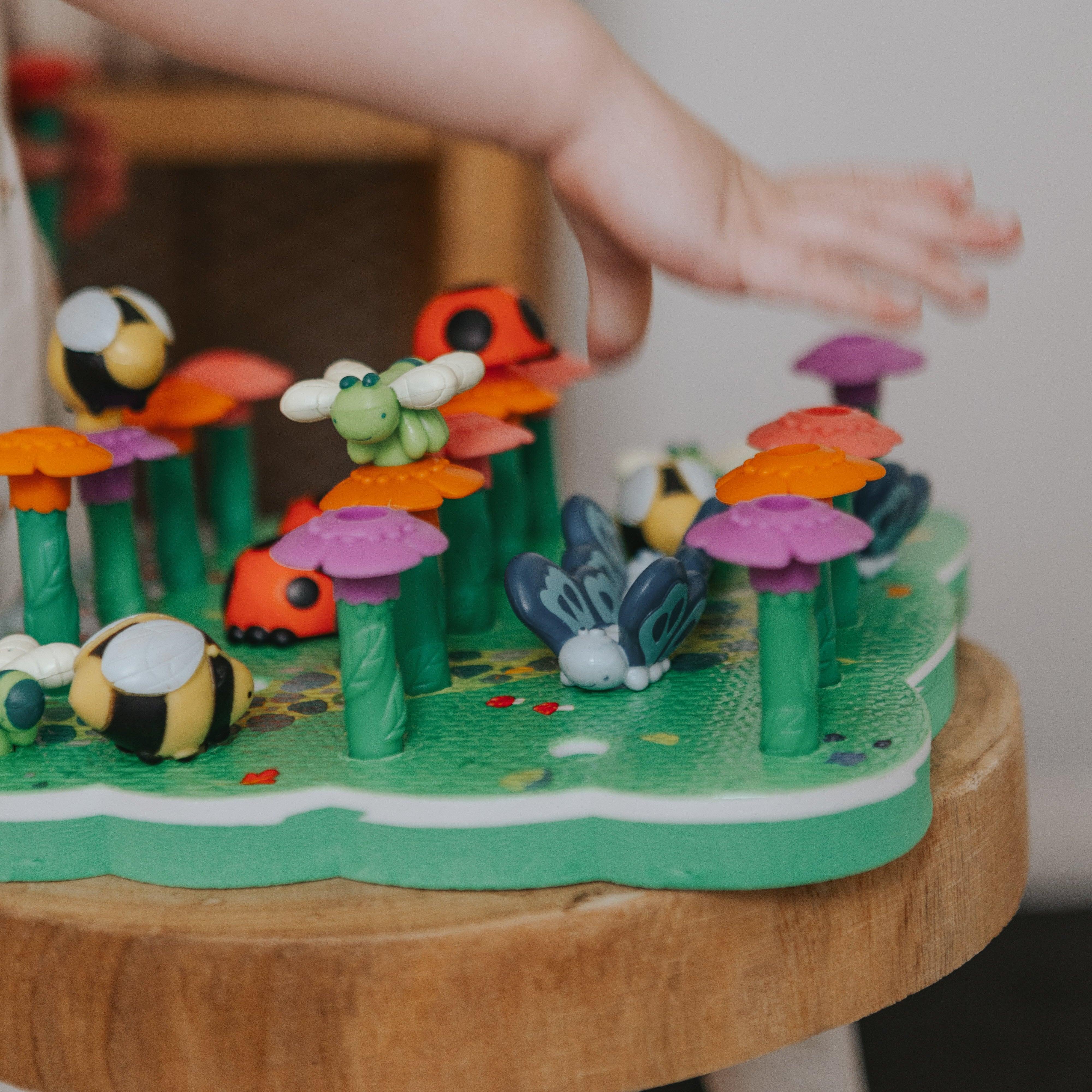 How does YOUR garden grow? Place colourful flower and insect pegs into this garden-themed pegboard to create sweet, stacked-up scenes.