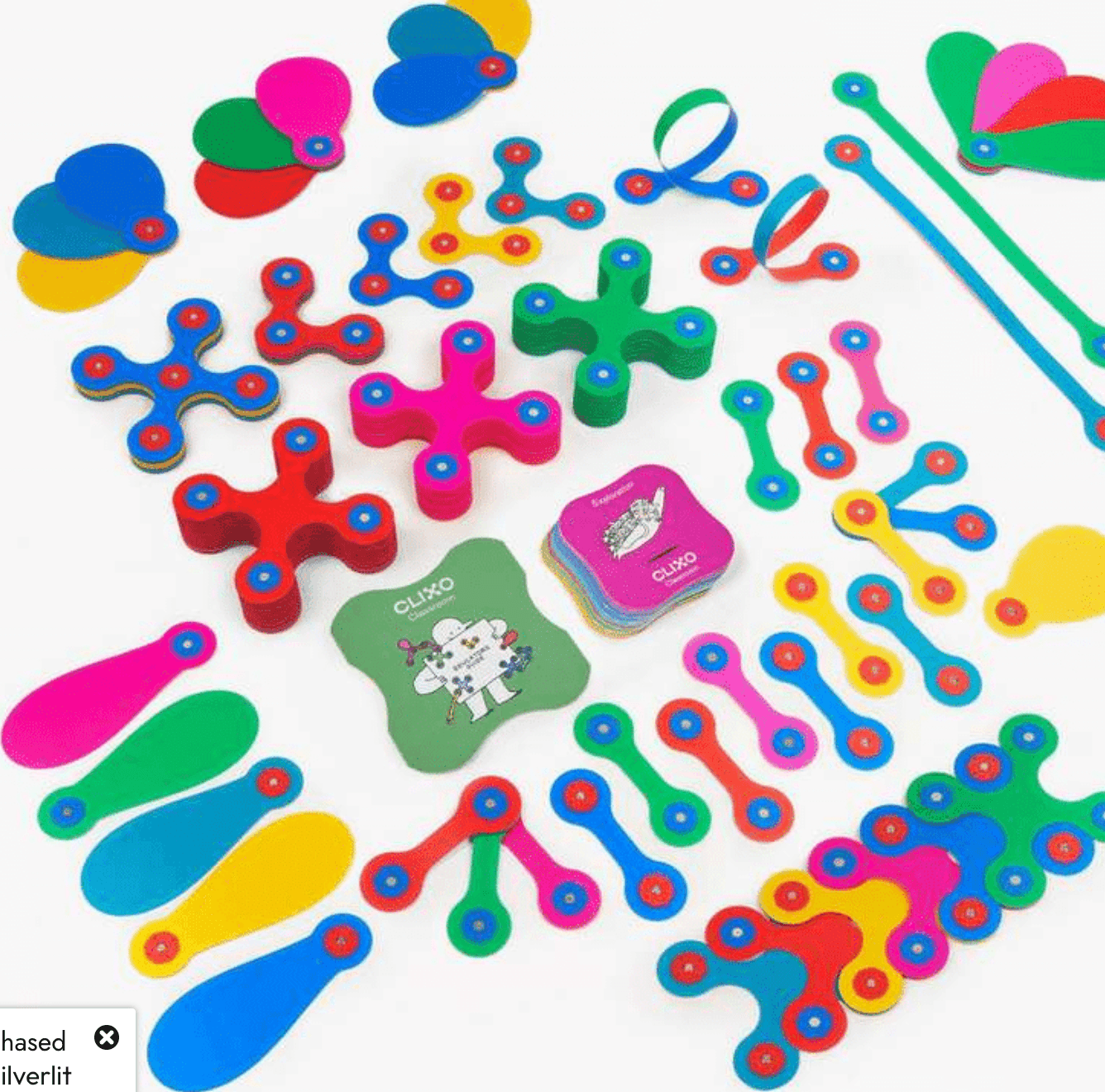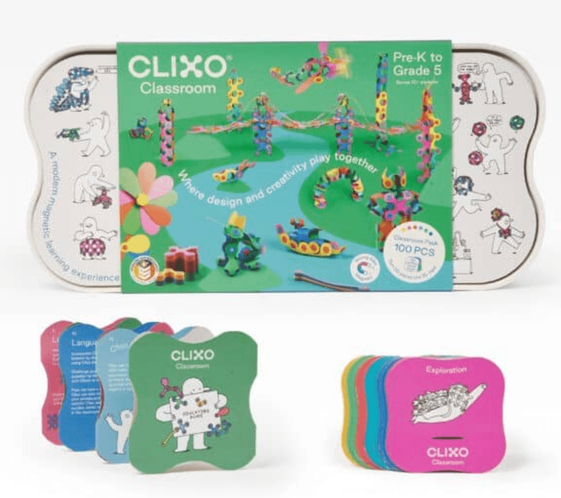 Ages 4+ Up to 15 children. Designed to be used alongside the Clixo® classroom online portal which offers FREE lesson plans and activity guides, video challenges and educator testimonials. Pack contains: 100 pieces, 7 different shapes, Educator's guide, 30 Activity Cards