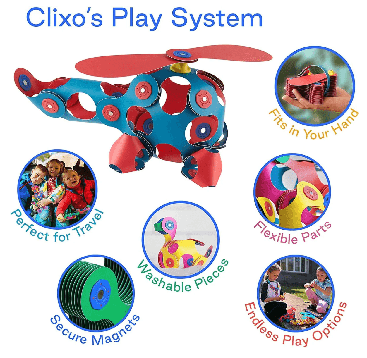 The Clixo range is a new addition to our store that creates a modern magnetic play experience for children. Clixo allows an endless amount of creative possibilities for kids simply by clicking together pieces in order to construct 3D creations from flexible 2D shapes and powerful magnets.
