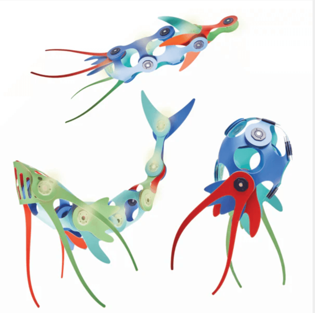Clixo’s new glow-in-the-dark pieces, fins, and tentacles bring underwater wonders to life. Inspire creative confidence, foster STEAM learning, and build endless underwater creations. The pack contains 24 pieces in 9 unique Clixo shapes.
