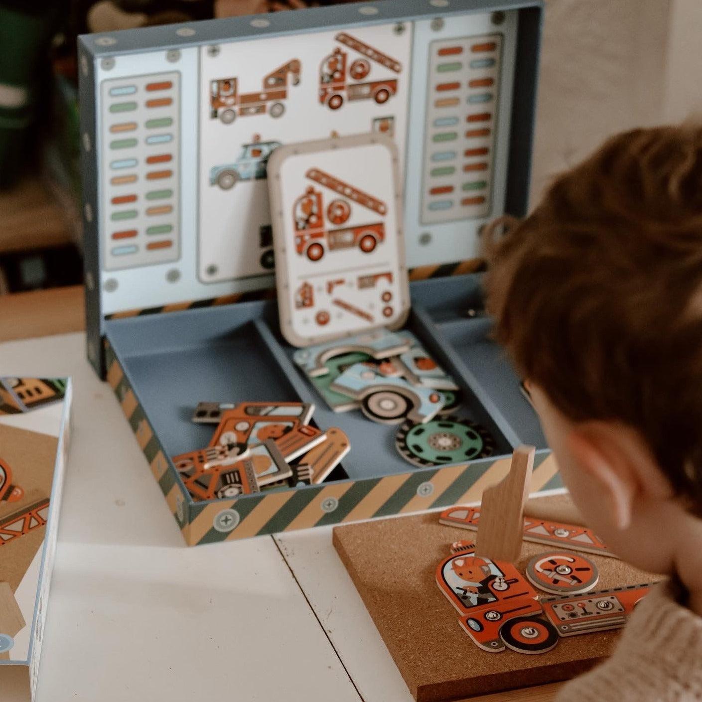 Make your own vehicle, tap tap it into place. Match the vehicles on the cards, or make your own!