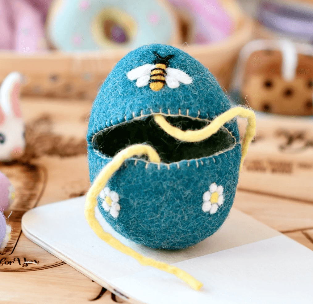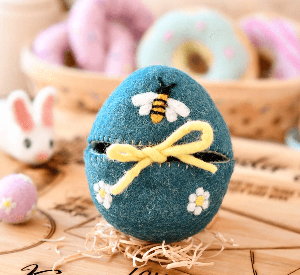 Experience the magic of Easter with our Felt Surprise Egg featuring a delightful Brown Bunny inside! The real magic happens when untie the ribbon of the egg to reveal the adorable surprise hidden inside. The brown bunny is able to stand by itself and make such a great addition to small world play.