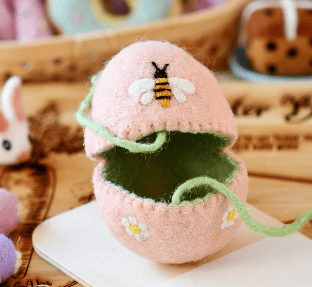 Experience the magic of Easter with our Felt Surprise Egg featuring a delightful Brown Bunny inside! The real magic happens when untie the ribbon of the egg to reveal the adorable surprise hidden inside. The brown bunny is able to stand by itself and make such a great addition to small world play.