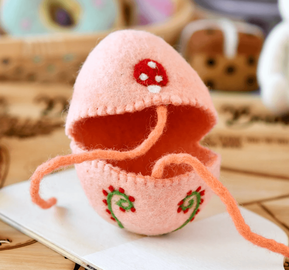 Experience the magic of Easter with our Felt Surprise Egg featuring a delightful Brown Bunny inside! The real magic happens when untie the ribbon of the egg to reveal the adorable surprise hidden inside. The brown bunny is able to stand by itself and make such a great addition to small world play.