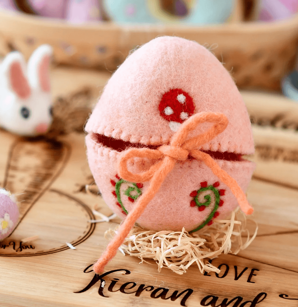Perfect for Easter baskets, egg hunts, or as a special treat for your loved ones, our Felt Surprise Egg with Brown Bunny inside adds an element of surprise and whimsy to your holiday celebrations.