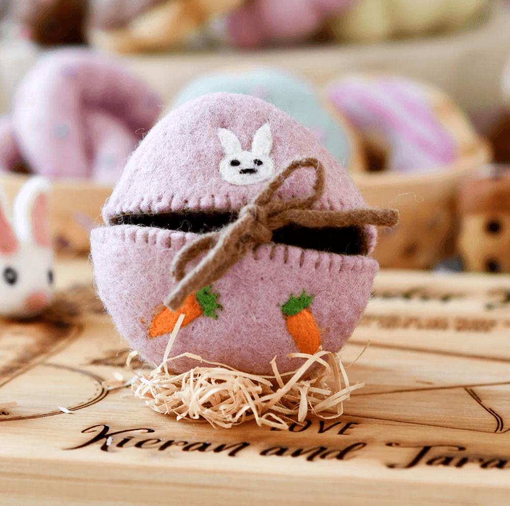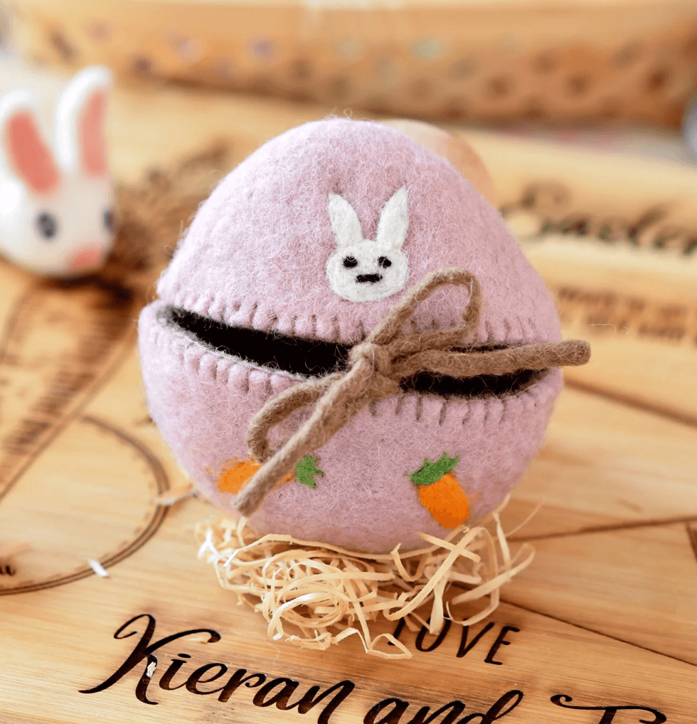 Perfect for Easter baskets, egg hunts, or as a special treat for your loved ones, our Felt Surprise Egg with Brown Bunny inside adds an element of surprise and whimsy to your holiday celebrations.