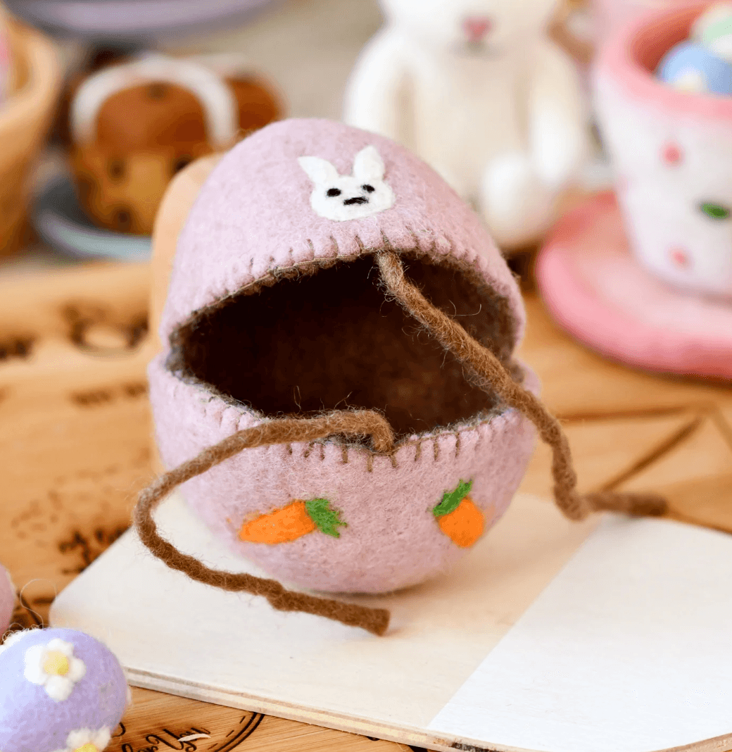 Experience the magic of Easter with our Felt Surprise Egg featuring a delightful Brown Bunny inside! The real magic happens when untie the ribbon of the egg to reveal the adorable surprise hidden inside. The brown bunny is able to stand by itself and make such a great addition to small world play.