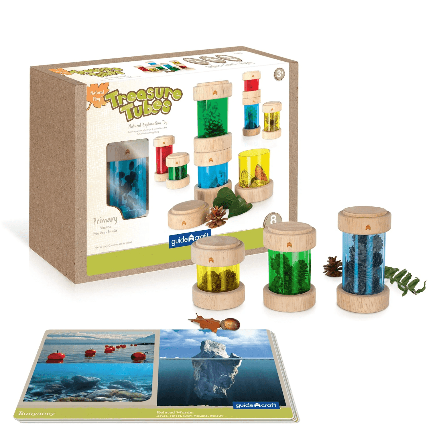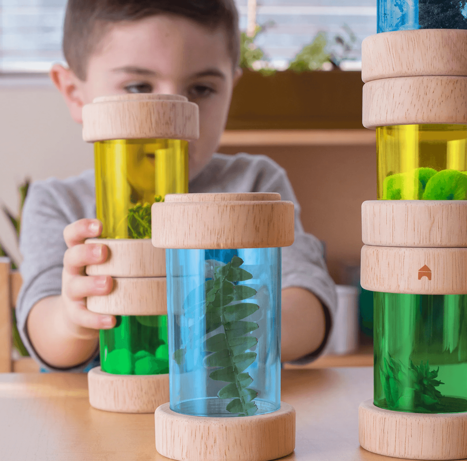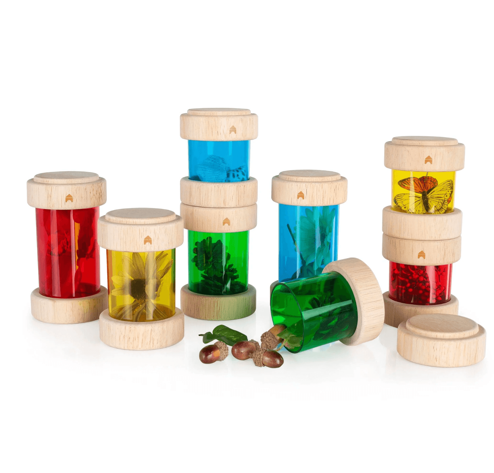 What makes a fun noise when you shake it? Find trinkets, natural materials and sensory objects to collect in the beautiful, stackable Treasure Tubes. The round, transparent tubes with removable covers hold small objects to observe, display or rattle. Ideal for colour and sound exploration and light table activities. Holds marbles, beads, twigs, leaves, small toys and more. Stack the tubes on top of each other to customise play experience. Easy-to-remove wooden top keep objects securely in place until ready to be replaced. Avoid using wet materials in Treasure Tubes for extended periods of time as it may cause mold.