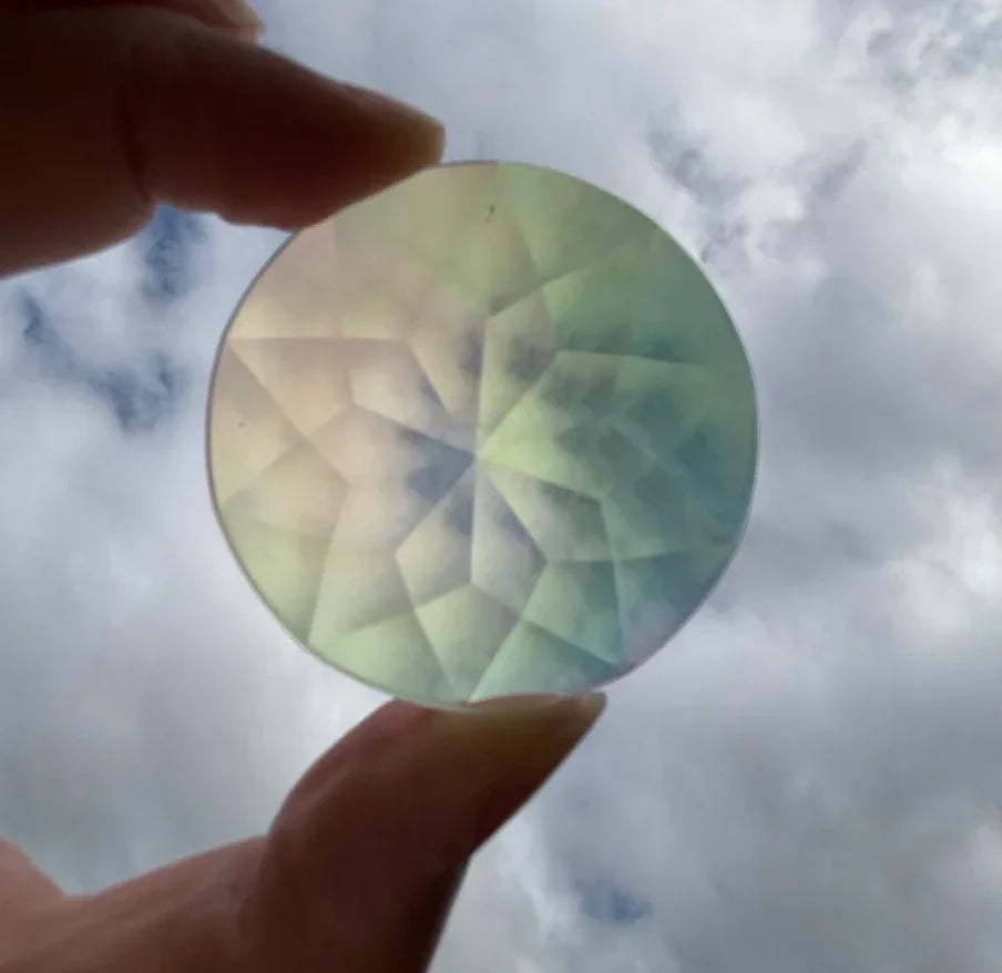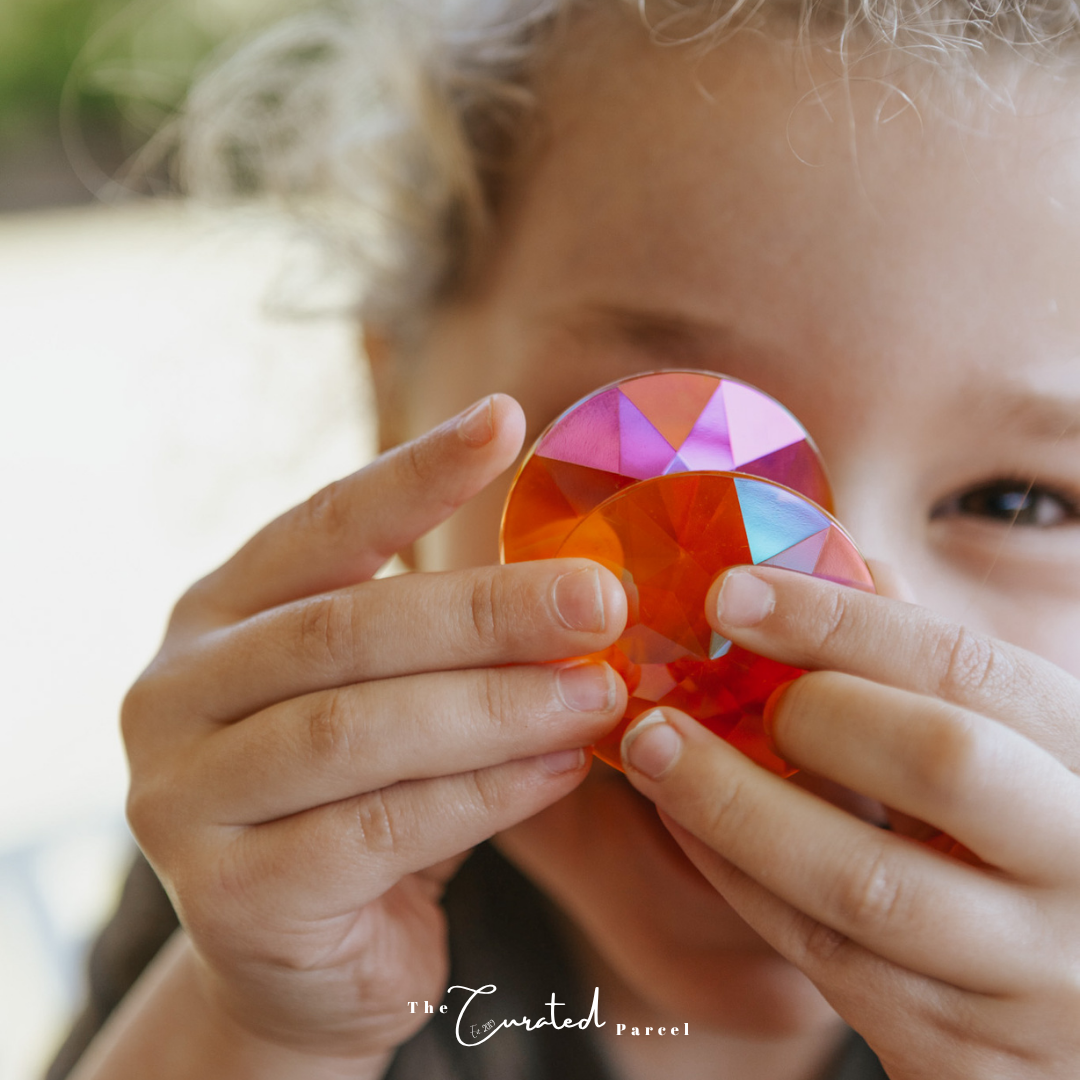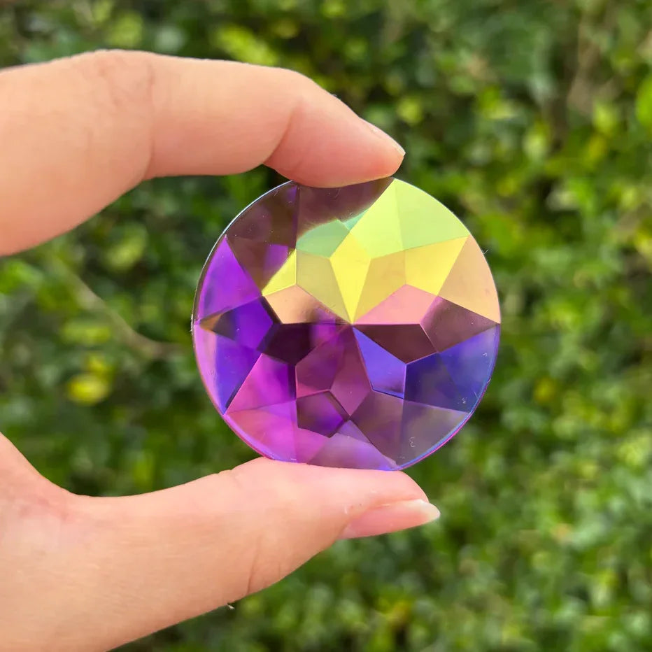 The AB finish gives it a unique, colour-changing, rainbow effect when it catches the light. The coating reflects light in such a way that the colour of the gem changes depending on the angle of light. Compared to basic plastic gems, AB acrylic gems look so much more vibrant and luxe. The coating elevates them visually. They're like the "deluxe edition" of play gems.