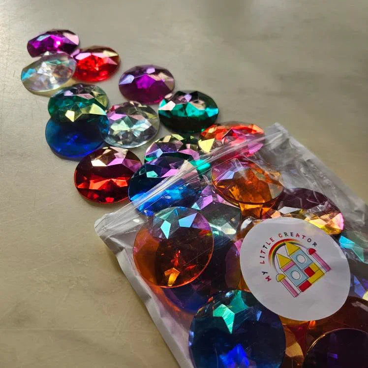 There are no specific rules or instructions. Children can use the gems in whatever way they imagine, which stimulates creativity and problem-solving. Kids can pretend they're treasures, magical crystals, endless fun and possibiltles.