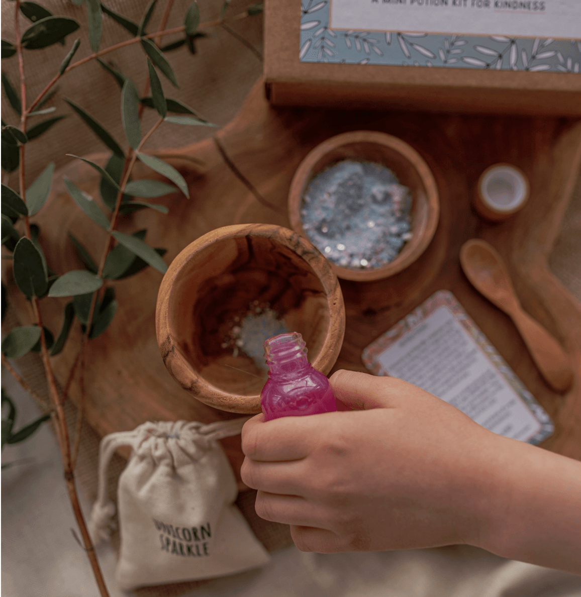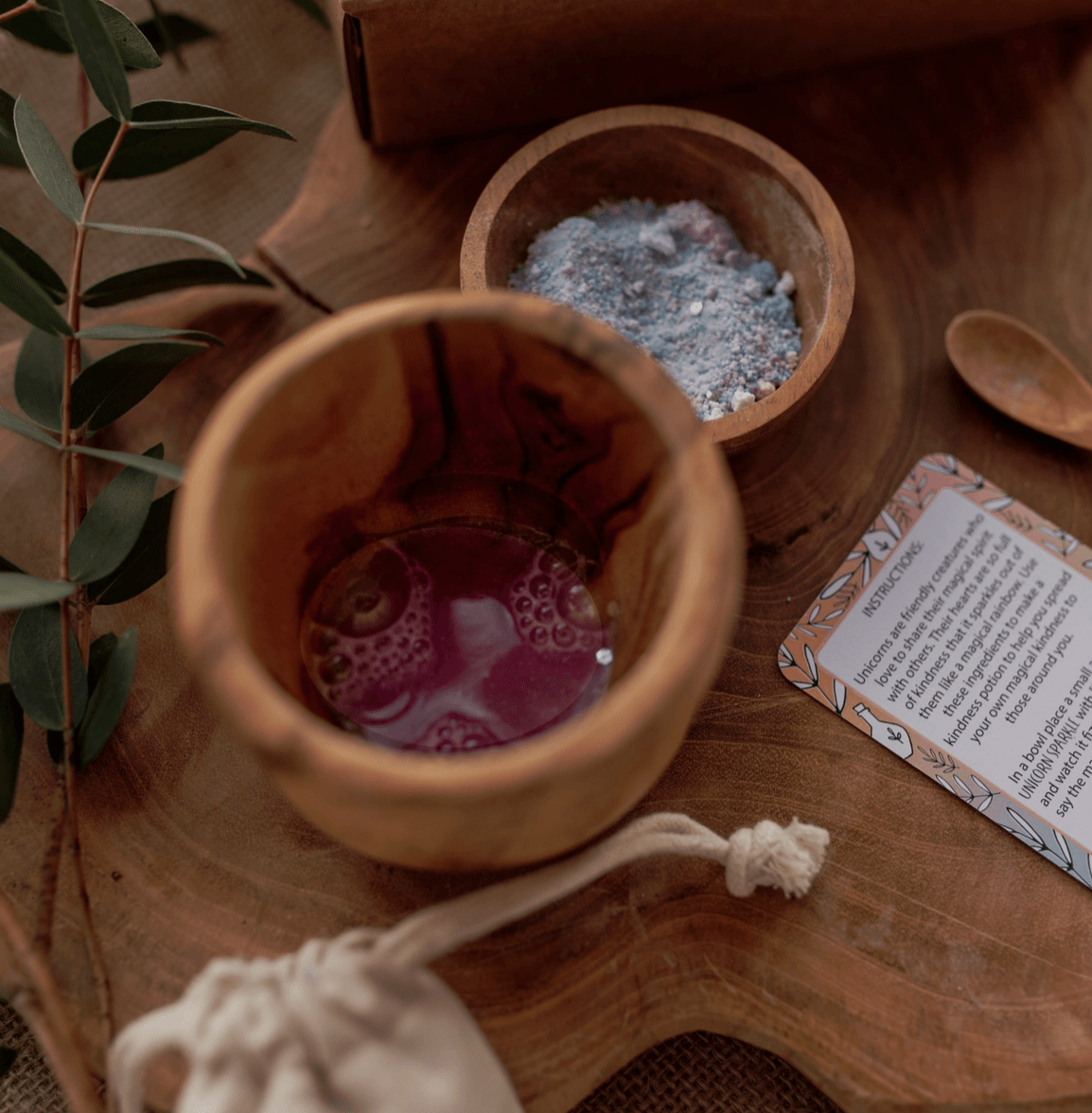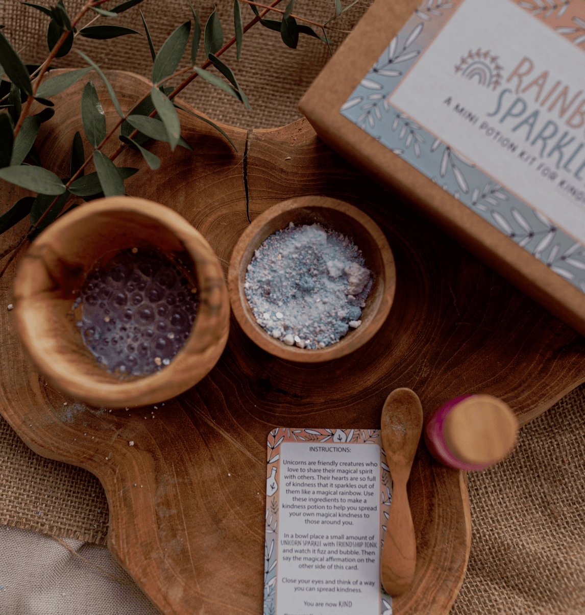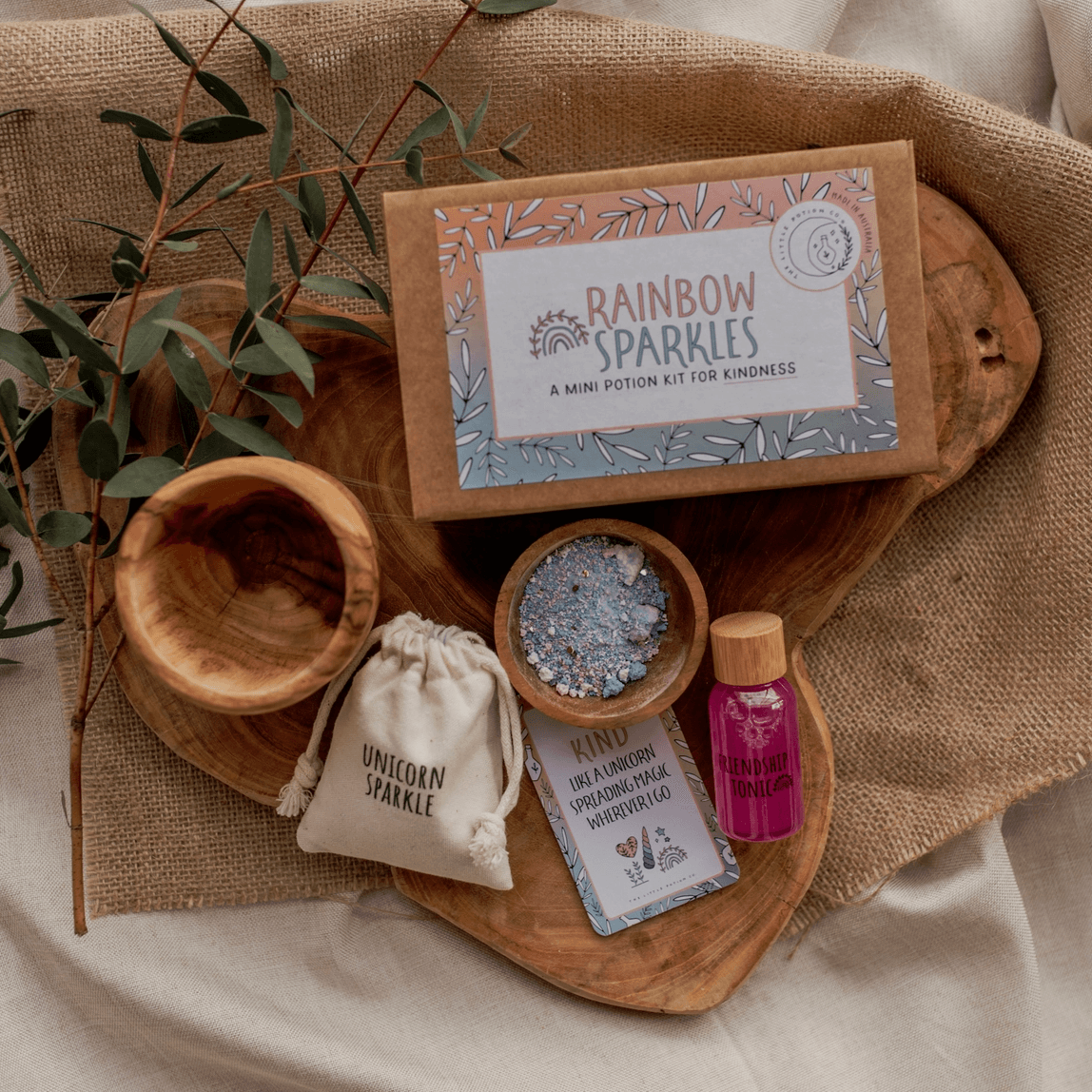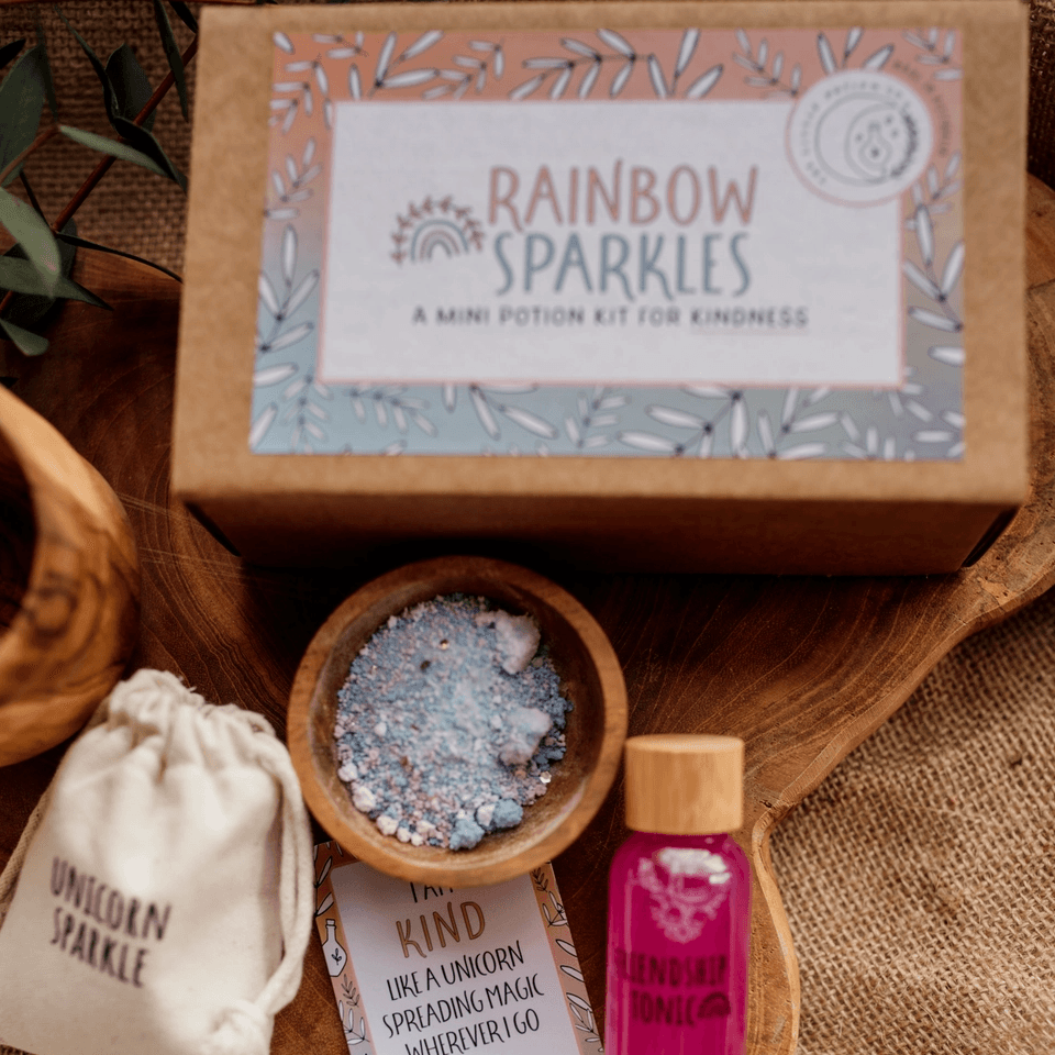 This Sparkly mini kit is for those who dream of meeting a unicorn and wish on rainbows. Create potions for Love, friendship and hope with this kit.