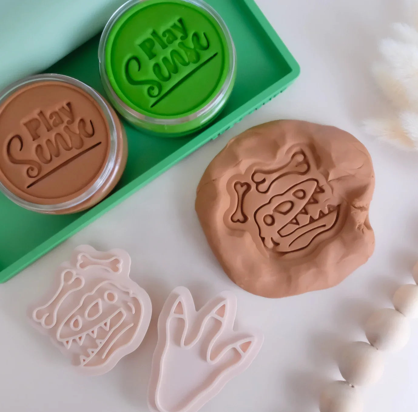 Play Sense // Eco Playdough Stamp Green - Dino Head Bones