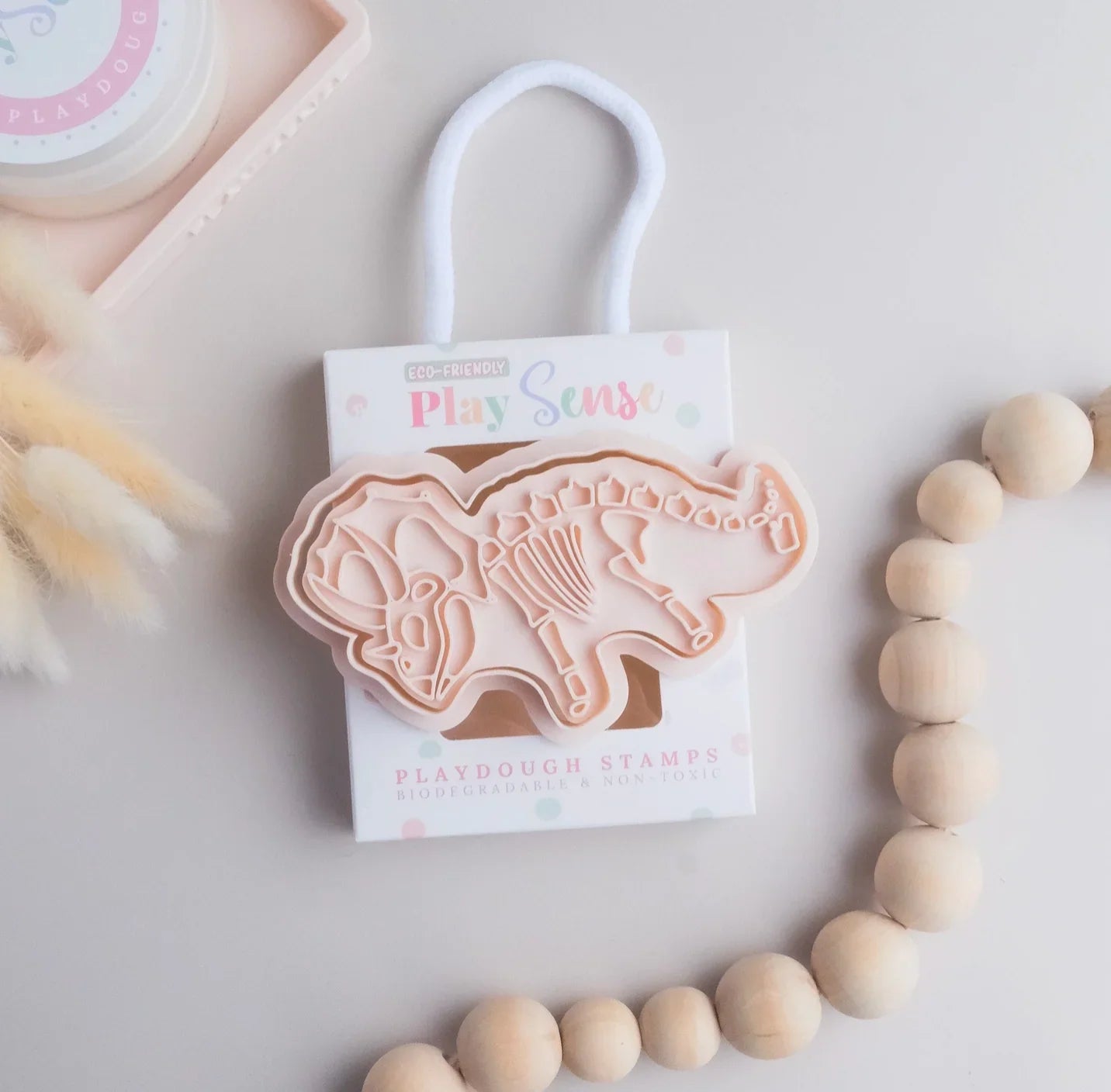 Play Sense // Eco Playdough Stamp Green - Dino Triceratops Bones
