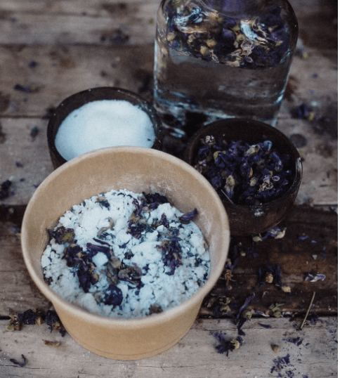 Then sprinkle them with the fairy dust or lemon juice and watch them change colour to pinky purple.