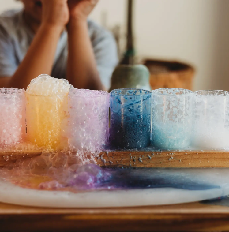 Fizz is the most wonderful sensory experience. When you drop it in a bowl of water it will explode into bubbles, or you can slowly add spoons of water for a longer fizzy play. What’s In It? We use all natural, food grade ingredients in our fizz with colours from nature such as food powders or food dyes. Some of our fizz is garnished with dried botanicals, edible leaf foil, Australian seashells and bio glitter from ‘the glitter tribe’ and with lush scents from essential oils.