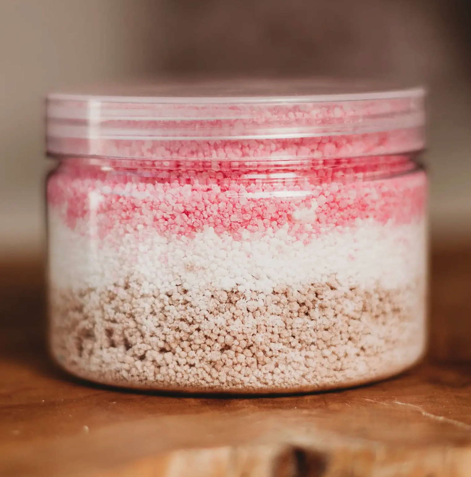 Fizz is the most wonderful sensory experience. When you drop it in a bowl of water it will explode into bubbles, or you can slowly add spoons of water for a longer fizzy play. What’s In It? We use all natural, food grade ingredients in our fizz with colours from nature such as food powders or food dyes. Some of our fizz is garnished with dried botanicals, edible leaf foil, Australian seashells and bio glitter from ‘the glitter tribe’ and with lush scents from essential oils.
