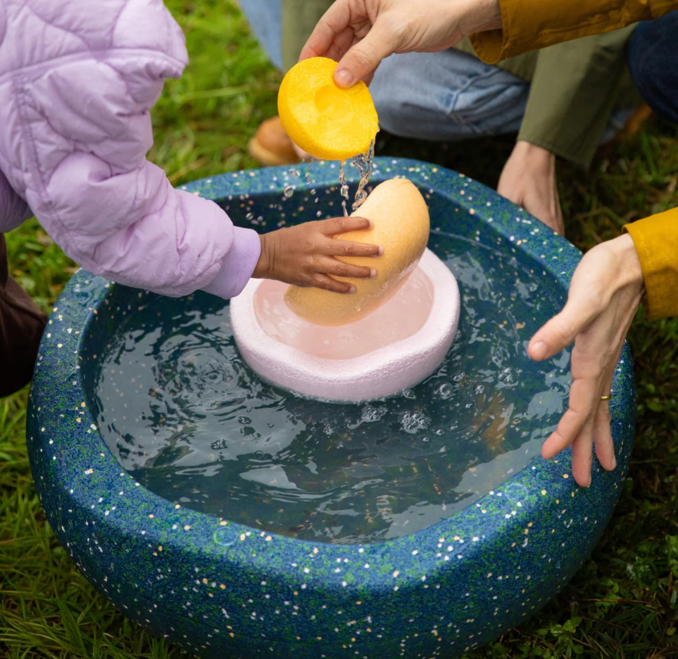The Stapelstein® Easter Promo Water Play Set - a special combo of the limited edition Pond Grow XL + Sea Rose Inside Set - to bring playful aquatic adventures to life as floating stepping stones, water scoopers and water drums; inspiring balance, coordination and sensory exploration in baths, pools, or in the garden!