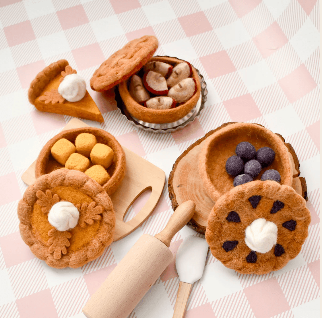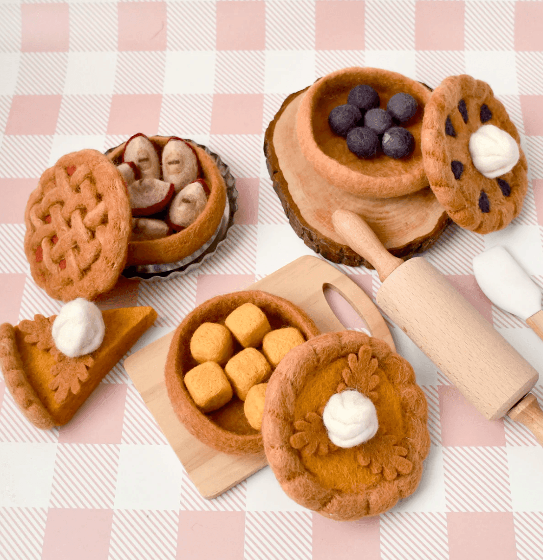 Our Felt Blueberry Pie is a delightful addition to any play kitchen or pretend bakery. The intricately designed crust and removable blueberries provide endless opportunities for imaginative play and educational activities. Children will love counting and sorting the blueberries, making this toy both entertaining and beneficial for their development.