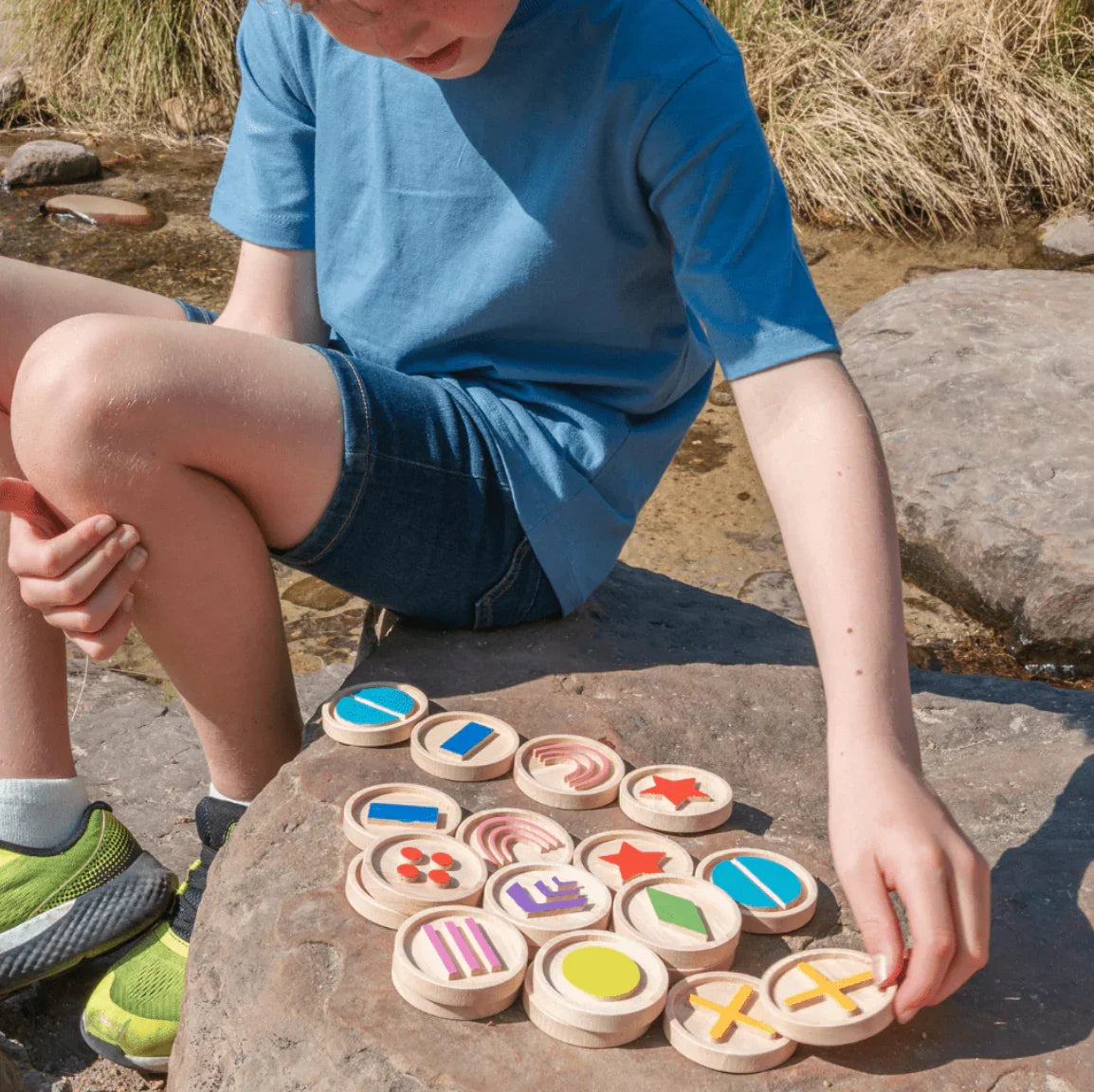 Each disc measures 5cm in diameter and features unique grooved patterns, brightly colored and stained for visual appeal. Discover a variety of textures and patterns, from smooth waves to bumpy circles, perfect for sensory learning.