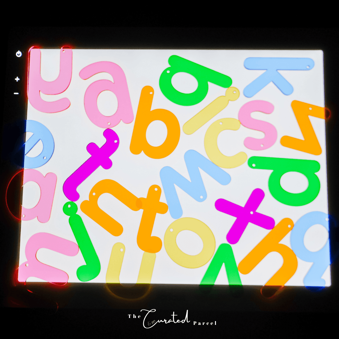 tickit®Rainbow Letters are colourful clear acrylic letters in a clear child-friendly font, making them ideal for letter recognition and learning the alphabet. Their tactile and colourful properties capture your child's attention, encouraging them to trace the shape of the letters with their finger on the smooth surface. Ideal for use with a light panel. Each letter has a hole at the top to allow you to create hanging letter displays or mobiles.
