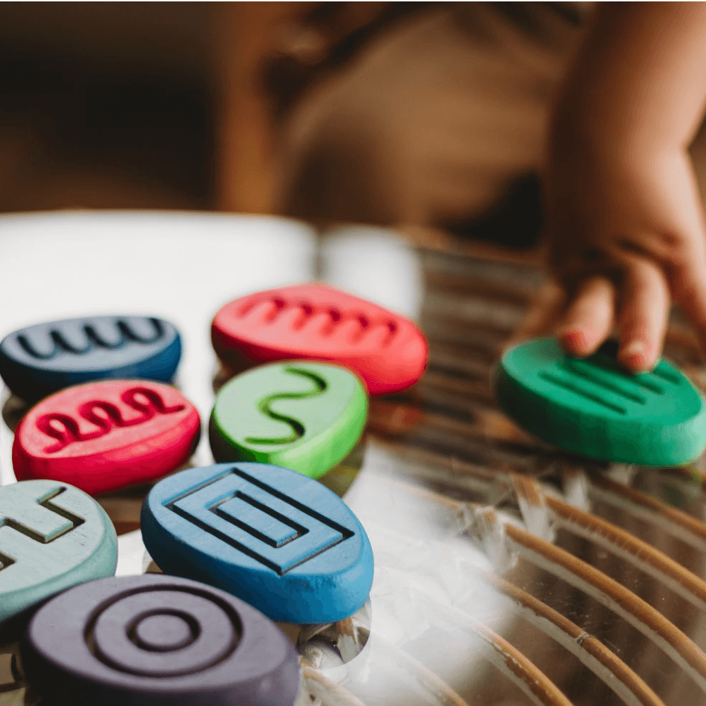 This colourful, wooden set of engraved pebbles is designed to make learning fun and engaging. Each pebble features unique patterns for tracing, allowing your little ones to explore early writing skills in a playful and engaging way.