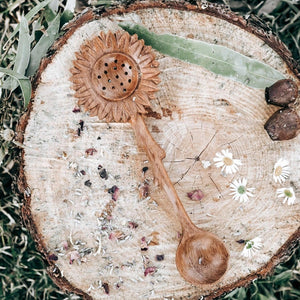 extend fizz, potion, mud kitchen, sand, water and really any sensory play by providing a place to observe a little longer. A pause. After watching my child's play for many years. There was always a frenzied excitement to fizz play that see's lots of water poured over very quickly and sometimes this means ingredients disappear faster than we would have liked. A keen observer he would then ask for more, more, more.... so enter the strainer collection. A perfectly sized spot to hold PlayFizz and provide opportunity to watch it bubble, react and fizz a little longer and collect the crystals and botanicals. Perfect for scooping flowers, collecting treasures, sand play etc..