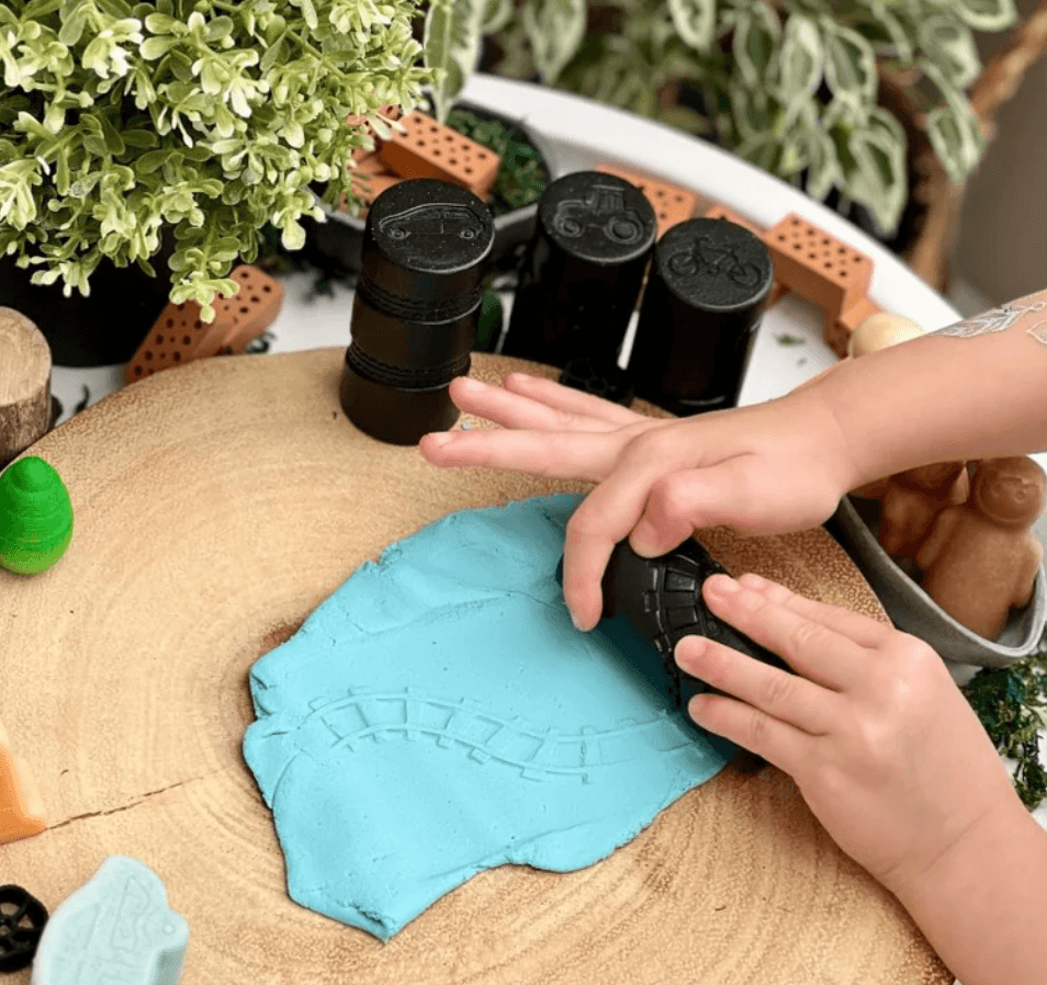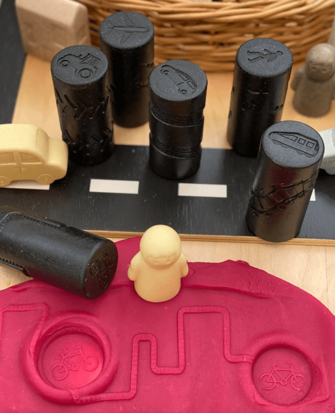 Children will enjoy taking imaginary journeys as they roll and stamp urban and rural forms of transport into play dough, clay or sand. Count the footsteps made by the pedestrian, develop storytelling skills featuring magical journeys, and extend language skills considering where the tracks lead…