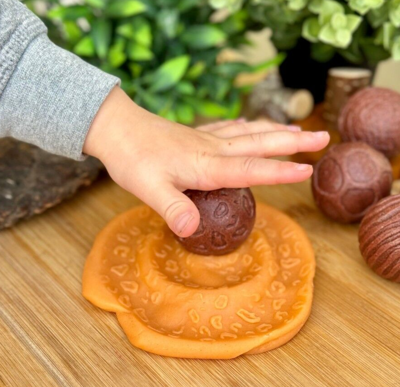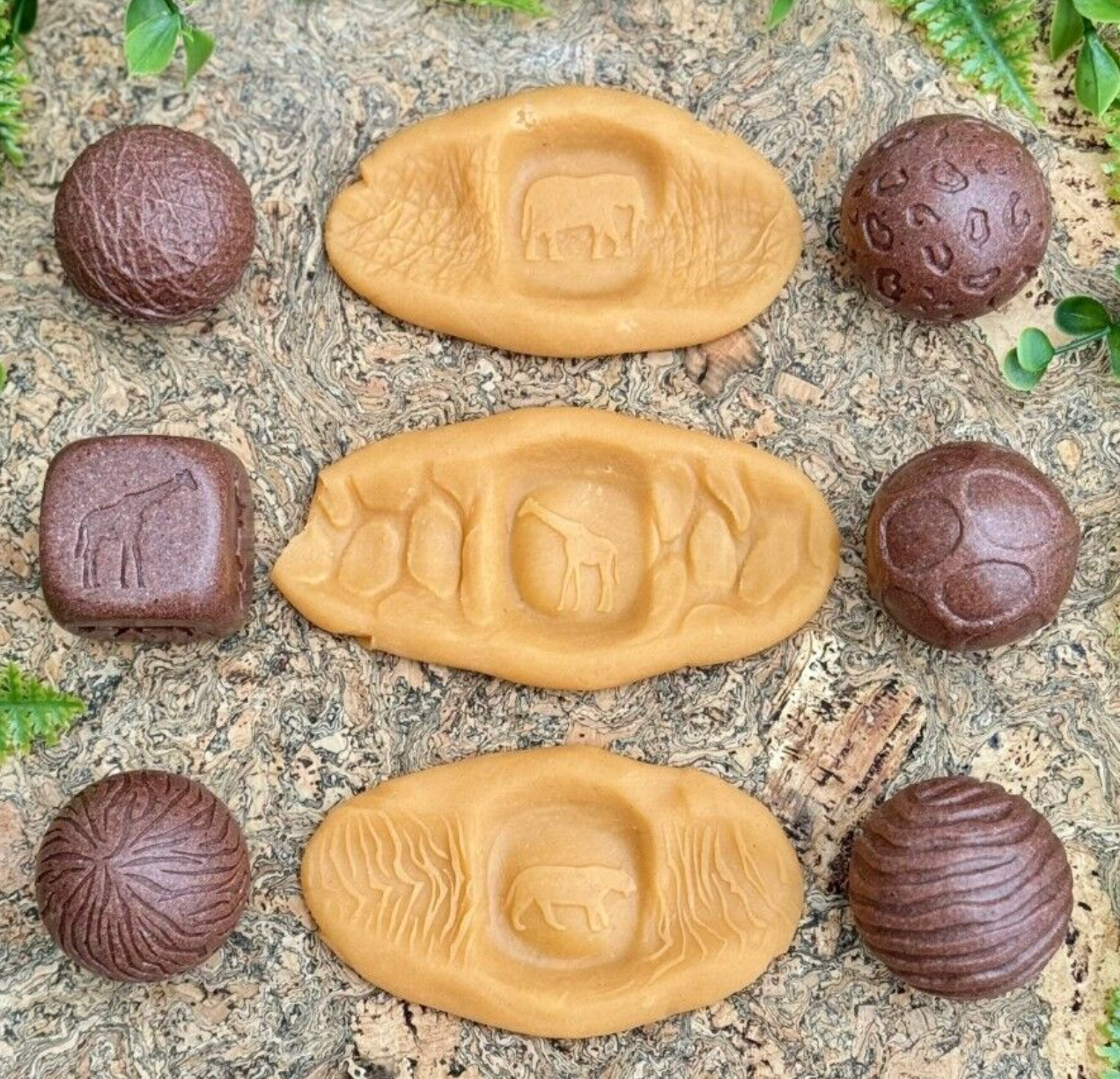 Take a walk on the wild side with this intriguing set of rollers featuring iconic wild animals: giraffe, zebra, tiger, leopard, and elephant. Perfect for interactive 'Who am I?' activities, children will enjoy creating tactile patterns in playdough and stamping to identify the animal owner! Ideal for developing fine motor skills, the wonderfully sensory patterns are appealing to touch, encouraging children to make detailed observations, expanding their vocabulary and enhancing language and storytelling skills. A valuable way to extend conversations about camouflage, animal habitats, food chains and foster care and understanding of our natural world. Made from a durable stone mix, the rollers and stamper are ideal for indoor and outdoor play, and easily washable after every wild adventure!
